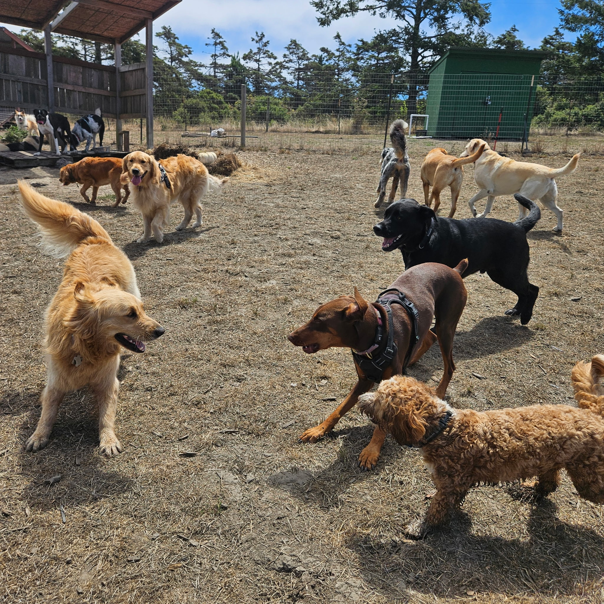 Your dog deserves more than just another day at home. At our multi-acre Peninsula retreat, we create the kind of playdate experience that leaves tails wagging and owners smiling. We pick up, we play, we drop off—and through it all, your pup gets the love and attention they’d get from family, because that’s exactly how we see them.